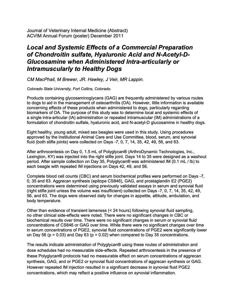 Polyglycan® is a patented formulation designed to replace lost or damaged synovial fluid. It contains naturally-occurring components of the synovia that play a central role in maintaining the homeostatic environment of the joint.